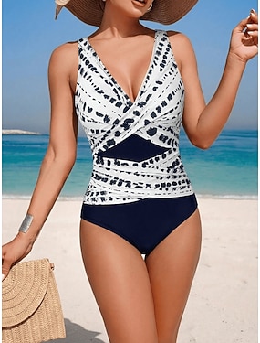 Dámské jednodílné plavky štíhlící monokini vysoké vykrojení s kontrolou břicha vysokým pasem štíhlé bez zad vhodné na dovolenou s vintage grafickým geometrickým U výstřihem bez rukávů