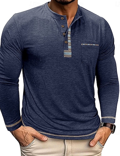 Pánské Tričko Tričko Henley Tričko Top Dlouhý rukáv Henley Léto Jaro Pevná barva Šik ven stylové Na běžné nošení Kapsy Knoflíky Ležérní Denní Venkovní Zelená Světle modrá Tmavě námořnická Top tričko