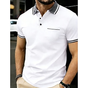 Pánské Tlačítko nahoru Polos Golfová košile Ležérní Sport Klopa Krátký rukáv Módní Základní Barevné bloky Slátanina Knoflíky Léto Černá Žlutá Trávová zelená Tlačítko nahoru Polos
