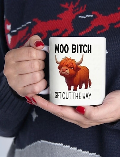 Hrnek "moo bitch, get out of way", vtipný keramický hrnek na kávu s motivem krávy (350 ml/11 oz) na horký čaj s mlékem nebo horkou čokoládu, unikátní dárek pro domácí kancelářský stůl a přátele s