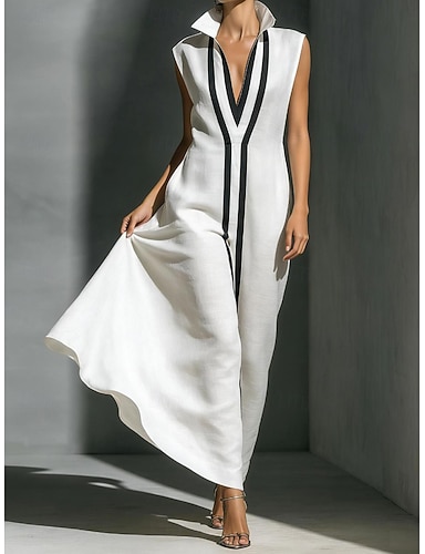 Dámské Maxi dlouhé šaty Maxi šaty Elegantní Moderní Venkovní Dovolená Jdeme ven Volný Barevné bloky Bez rukávů Košilový límec Černá Bílá Fialová Šedá Léto Jaro