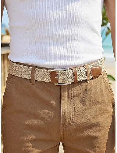 Pánský pletený strečový pásek s lemováním z umělé kůže, nastavitelný tkaný ležérní bederní pásek v několika barvách pro každodenní nošení, dovolenou na pláži, cestování a styling v resortu