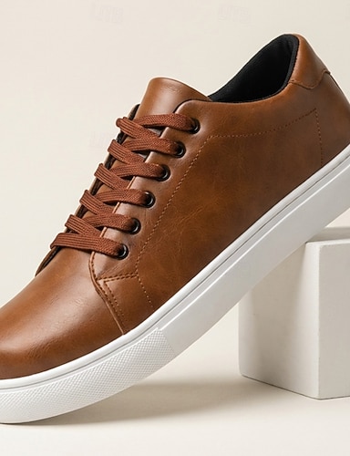 Pánské hnědé ležérní tenisky se šněrováním, minimalistické nízké pohodlné vycházkové boty pro každodenní nošení, cestování, dojíždění, víkendové outfity, outdoorové aktivity a smart-casual styl.