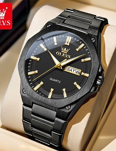 Pánské luxusní hodinky olevs, černé, nerezové, quartzové, vodotěsné, světelné, denní, rande, obchodní, módní, sportovní, s velkým ciferníkem, osmiúhelníkový design, dárek pro tátu a manžela