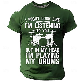 Pánské tričko s vtipným potiskem „v hlavě hraji na bicí“, bubeník, vtipný citát, tričko s motivem perkusionisty, hudebník, dárek, cvičební vybavení pro kapelu, stylové, ležérní, krátký rukáv, velikost