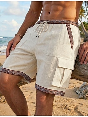 Pánské Kraťasy Lněné šortky Letní šortky Plážové šortky Šňůrky Elastický pas Multi kapsa Jednobarevné Lehká váha Prodyšné Délka kolen Venkovní Streetwear Zahradní slavnost prázdniny Etnický styl