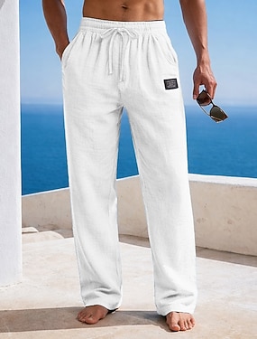 Pánské Plátěné kalhoty Kalhoty chinos Letní kalhoty Straight-Leg Bez vzoru Pohodlné Prodyšné Plná délka Ležérní Denní Venkovní prázdniny Módní Černá Bílá Neelastické