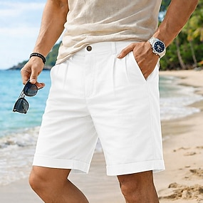 Pánské Lněné šortky Šortky Letní šortky Plisované šortky Kapsy Knoflíky Záhyby Bez vzoru Pohodlné Prodyšné Délka kolen Ležérní Denní Dovolená Módní Designové Černá Bílá Neelastické