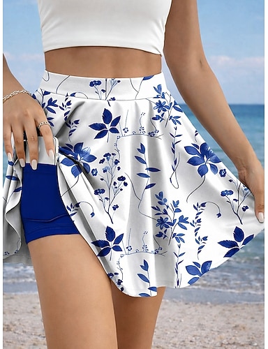 Dámské Dovolená sukně Tenisová sukně Elegantní Módní Havajské Oblečení na pláž Mini Vysoký pas Sukně Květinový Grafika Vysoká pružnost Denní Plážové Modrá a bílá Oranžová Tmavomodrá Léto 95