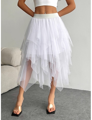 Dámské Dovolená sukně Elegantní Módní Roztomilý Na běžné nošení Midi Střední vzestup Sukně Bez vzoru Elastický pas Vícevrstvé Síťka Lehce elastické Denní Dovolená Černá Bílá Šampaňská Růžová Léto