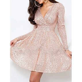 Dámské Mini šaty Černé šaty Flitrové šaty Volnočasové šaty Koktejlky Na běžné nošení Párty Běžný Bez vzoru Dlouhý rukáv Do V Černá Bílá Fuchsiová Podzim