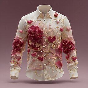 Valentýn Pánské Romantické Květiny Košile Košile na knoflíky Dlouhý rukáv Móda pro volný čas Dar Dovolená Jaro Podzim Přehnutý 3D tisk košile s límečkem Bílá 1 Bílá