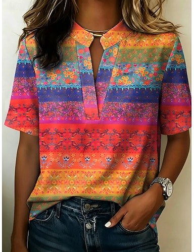Dámské Halenka Knoflíky Tisk Grafika Geometrický Vinobraní stylové Moderní Poloviční rukáv Stojáček Běžné topy Ležérní Denní Vodní modrá Žlutá Fialová Oranžová Léto Jaro