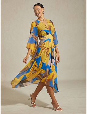 Dámské maxi šaty šifonové abstraktní květinový vzor průsvitné splývavé ležérní destinace svatební host dovolená cestování letovisko jaro léto podzim