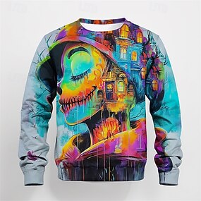 předvečer Všech svatých Chlapecké 3D Grafika Lebky Mikina Dlouhý rukáv Jaro Podzim Módní Základní Polyester Děti 4-12 let Tričkový Venkovní Ležérní Denní Běžný