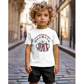 Americký den nezávislosti Chlapecké 3D Grafika Vlajka Tričko Košilky Krátký rukáv Léto Jaro Módní Základní Děti 4-12 let Tričkový Venkovní Ležérní Denní Běžný