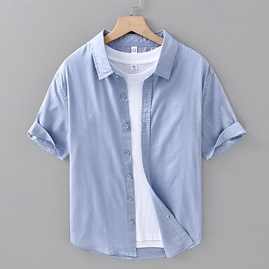 Pánské Košile Lněná košile Košile pro volný čas Košile na knoflíky Bavlněná košile Bez vzoru Dovolená ulice Bílá Námořnická modř Modrá Nebeská modř Krátký rukáv Přehnutý Léto Oblečení