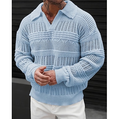 Pánské Pulovrový svetr Pletený svetr Rýhovaný Plést Běžné topy Pletený Bez vzoru Klopa Módní Základní Dovolená Denní nošení Oblečení Podzim zima Modrá Zelená S M L