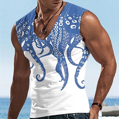 Pánské Grafika Zvíře Chobotnice Bez rukávů Vesta Top Pánské triko bez rukávů Bez rukávů tričko 3D tisk Do V Košile Designové Na běžné nošení Sval Sport Běh Posilovna Černá Žlutá Modrá Jaro léto