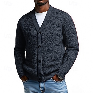 Pánské Svetr Svetr Cardigan Kardigan Rýhovaný Plést Běžné topy Knoflíky Bez vzoru Do V Módní Šik ven Dovolená Ležérní Oblečení Podzim Zima Bordó Modrá S M L