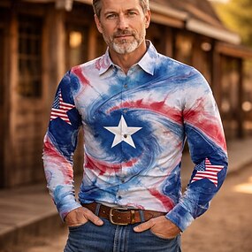 250. výročí USA Retro 70. léta Tričko Aloha košile Dlouhé rukávy Hippie Geometrické tvary Geleneksel Maškarní kostým Pánské Plesová maškaráda 4.července Párty Den nezávislosti Dospělé Tričko