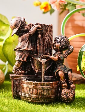 zahradní vodní fontána socha fluorescenční světlo v noci dětské náladovost starožitná bronzová fontána socha terénní úpravy dekorace pro zahradu trávník terasa balkon umělecká výzdoba