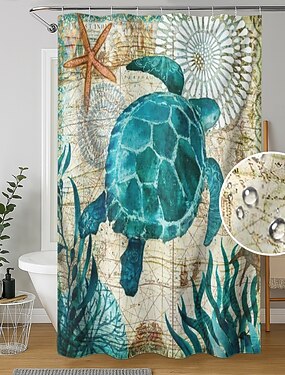 Závěs do sprchy s háčky 180cm*180cm(70"*70") polyester pratelný voděodolný vzor oceánské krajiny