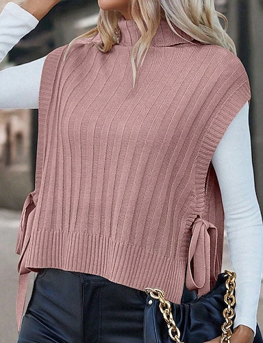 Dámské Svetr Rolák Šik ven Na běžné nošení Pevná barva Rolák Pletený Bez rukávů Běžné topy Plést Denní Dovolená Jdeme ven Světlá růžová Meruňková Podzim Zima