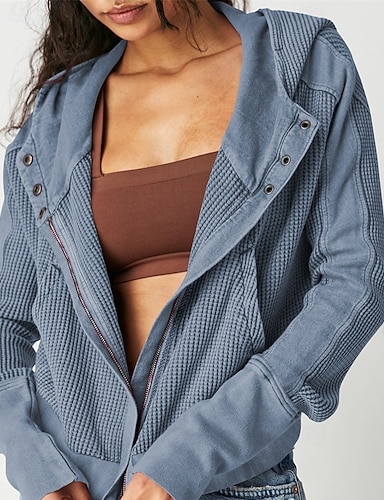 Dámské Neformální bunda Pohodlné Prodyšné Zip Na běžné nošení Bez vzoru Dovolená ulice Ležérní Denní nošení Zip Krátké Přehnutý Běžný Dlouhý rukáv Svrchní oděvy Bílá Vodní modrá Jaro Podzim