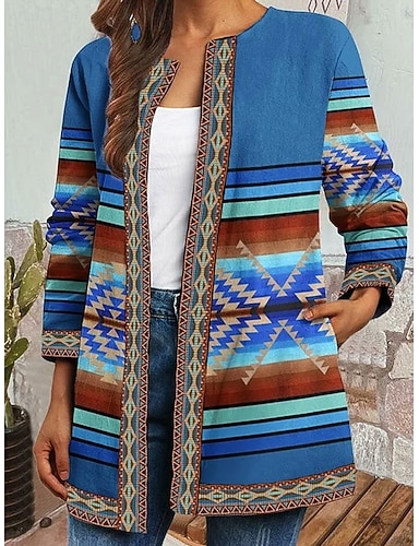 Dámské Šerpa bunda Neformální bunda Pohodlné Prodyšné Tisk Na běžné nošení Geometrický Dovolená ulice Ležérní Denní nošení Otevřený vepředu Standardní Kapuce Běžný Dlouhý rukáv Svrchní oděvy Rubínov
