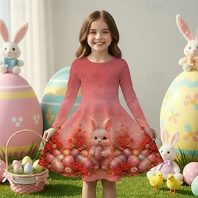 Velikonoce Girls ' 3D Grafika Králíček Šaty Dlouhý rukáv 3D tisk Jaro Podzim Denní Dovolená Párty Na běžné nošení Princeznovské Krásná Děti 4-12 let Volnočasové šaty Áčkové šaty Délka ke kolenům Běžný