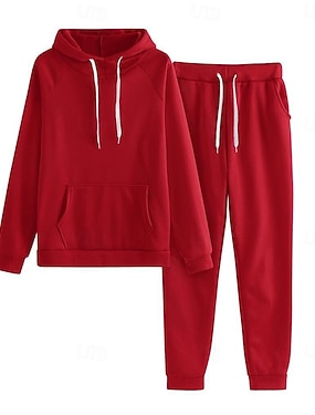 Dámské Módní Šik ven Denní Sady kalhot Dlouhý rukáv Kapuce Pevná barva Ležérní Denní Černá Světlá růžová Rubínově červená Léto Běžný