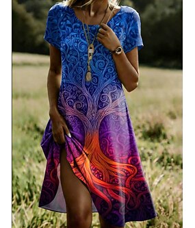 Dámské Midi šaty Tričkové šaty Letní šaty Áčkové šaty prázdniny Na běžné nošení Denní Dovolená Jdeme ven Běžný Květinový Grafika Krátký rukáv Tričkový Vodní modrá Fuchsiová Trávová zelená Léto Jaro