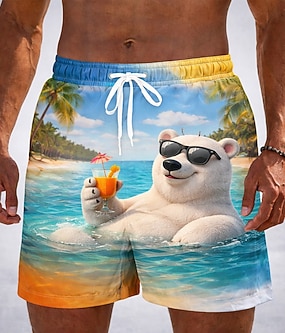Pánské Komiks Lední medvěd Hroch Plavecké trenýrky Plavky pánské Surfovací šortky Středně vysoký pas Legrační Havajské Plážová dovolená Boční kapsy Podšívka ze síťoviny Elastická šňůrka v pase Návrhář