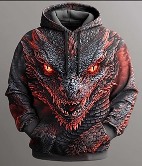 Pánské Drak Kapucky Mikina Módní Chladný Denní Dlouhý rukáv Tričkový Párty Dovolená Streetwear Černá Vodní modrá Oranžová Šedá Šňůrky Podzim Zima Návrhář S M L XL XXL XXXL