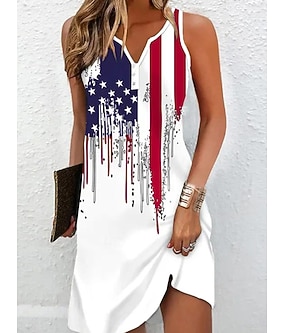 Den nezávislosti vlastenecké dámské šaty mini šaty petite šaty tričkové šaty sluneční šaty letní šaty aktivní móda streetwear venkovní dovolená street pravidelný fit vlajka