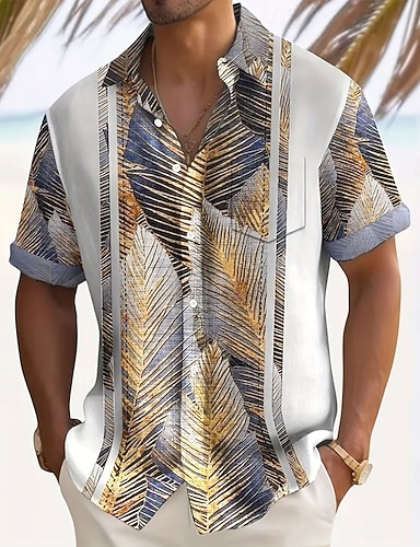Pánské Proužky Palmový list Tropické rostliny Havajská košile Košile na knoflíky Krátký rukáv Havajské Letovisko Dovolená Oblečení na pláž Léto Jaro Přehnutý košile s límečkem Jedna přední kapsa