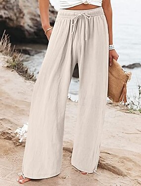 Dámské Kalhoty Letní kalhoty Kalhoty pro volný čas prázdniny Vinobraní Módní Plná délka Vysoký pas Bez vzoru Šňůrky Kapsy Široké nohavice Pohodlné Yumuşak Prodyšné Lehce elastické Denní Plážové ulice