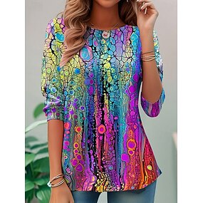 Dámské Tričko Tisk Tónované Grafika Abstraktní Módní stylové Klasické Dlouhý rukáv Tričkový Kulatý Běžné topy Denní Víkend Vodní modrá Rubínově červená Oranžová Léto Jaro Podzim
