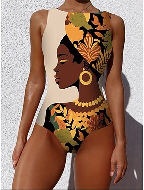 Dámské Plavky Jeden kus Slipy Plavky Oblečení na pláž léto Grafika Tropický vzhled Do U Bez rukávů Plavky