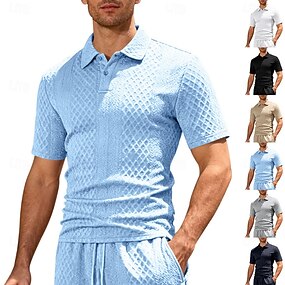 Pánské Pólo S texturou Ležérní Obchod Klopa Krátký rukáv Módní Moderní Bez vzoru Knoflíky Prodyšné Léto Jaro Běžný Černá Bílá Nebeská modř Khaki Šedá Pólo