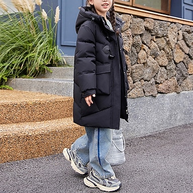 Děti Dívčí Péřová bunda Puffer Jacket Pevná barva Sportovní Kapsy Zahřívací Větruodolné Venkovní Kabát Svrchní oděvy 4-12 let Zima Černá Bílá Světle zelená