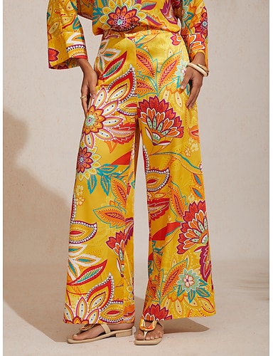 Dámské Žena Kalhoty Plná délka Satén Vysoký pas Elegantní Čechy prázdniny Ležérní Plážová dovolená Žlutá Léto XS S M