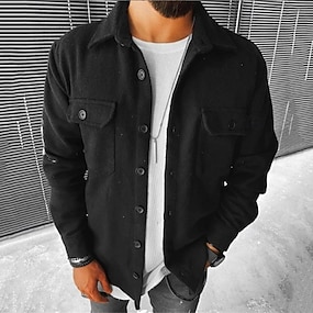 Pánské Shacket Košile bunda Zimní bunda Pléd Dovolená Denní nošení Černá Fialová Oranžová Khaki Dlouhý rukáv Klopa Podzim Zima Oblečení Kapsy
