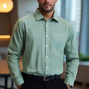 Pánské Košile Košile k obleku Košile na knoflíky Pléd Svatební Denní Vodní modrá Trávová zelená Dlouhý rukáv Přehnutý Jaro Podzim Oblečení Přední kapsa