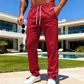 Pánské Tepláky Kalhoty Tepláky s rovnými nohama Šňůrky Kapsy Elastický pas Bez vzoru Pohodlné Yumuşak Plná délka Venkovní Ležérní Denní Módní Klasický styl Černá Rubínově červená Lehce elastické