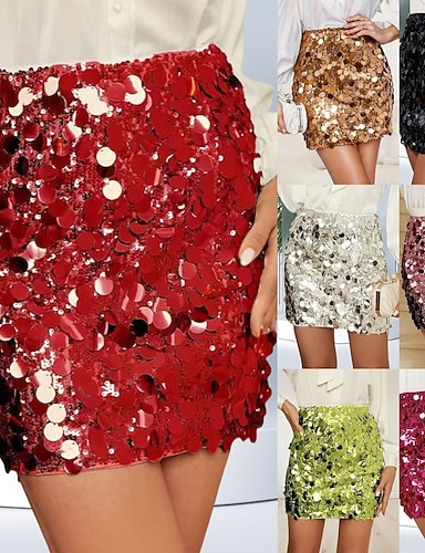 Dámské Módní Mini Vysoký pas Sukně Bez vzoru Flitry Neelastické Párty Rande Černá Bílá Rubínově červená Zlatá Léto Spandex Polyester