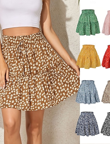 Dámské Dovolená sukně Módní Na běžné nošení Mini Vysoký pas Sukně Bez vzoru Šňůrky Volány Elastické Denní ulice Černá Bílá Oranžová Hnědá Léto Polyester