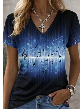 Dámské Tričko Tisk Květinový Grafika Hudba Vinobraní stylové Klasické Krátký rukáv Do V Běžné topy Denní Sport Jdeme ven Vodní modrá Rubínově červená Oranžová Léto Jaro Podzim Zima