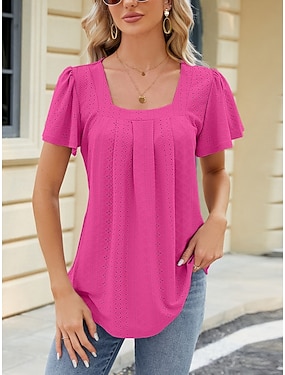 Dámské Halenka Poutko Pevná barva stylové Na běžné nošení Krátký rukáv Hranatý Běžné topy Denní Černá Světlá růžová Fialová Fialová Fuchsiová Léto Jaro